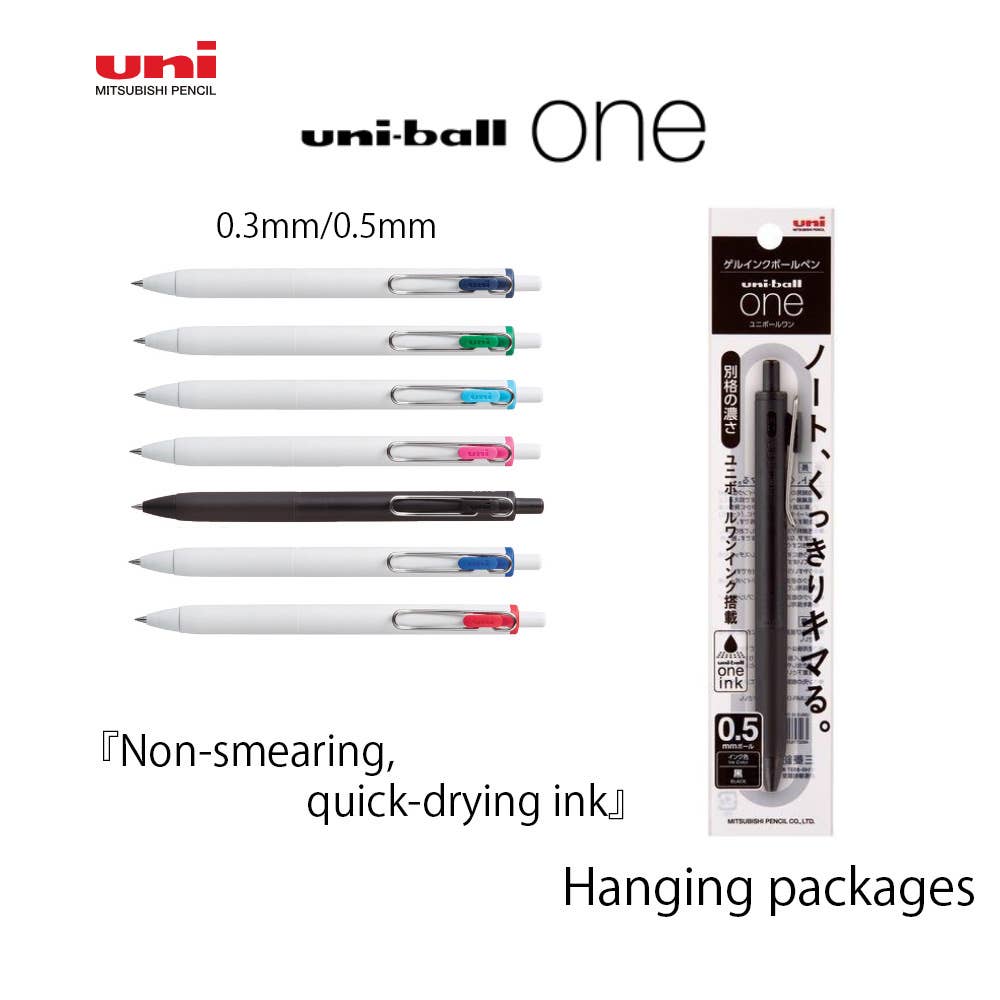 Clear and sharp notebooks! Gel-ink ballpoint pen with new ink using new bead-pack pigment technology, which has been proven effective for writing more colorful and memorable letters. Fast-drying ink that prevents bleeding. Unlike typical quick-drying ink, our newly developed Uniball One Ink adjusts the solid-to-liquid ratio to ensure quick penetration without blotting or bleed-through. It dries fast without bleeding through to the other side.
